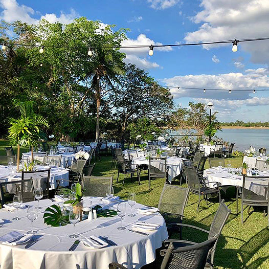 Lynden and Dylan married on the lush Pee Wee's lawns, after an intimate first look outside Darwin's iconic parliament house. Their theme was modern, lux and clean whites, with colour coming from Lynden's sharp red lip. Orchids and anthurium mingled with garden style roses, stocks and hydrangea to create the florals of the couples dreams. Our white ripple plinths framed the pair as they said their 'I do's', before they partied the evening away, guest tables adorned with Beija Flor centrepieces to match the vibe. The coolest wedding for the coolest couple. And no, we still aren't over that incredible veil either.