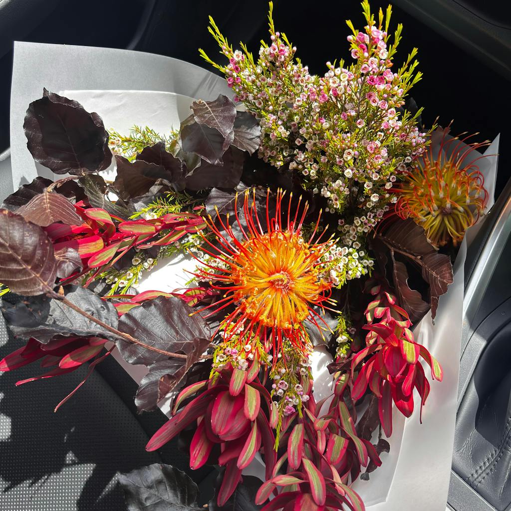 Channel the untamed beauty of Western Australia with our KIMBERLEY bouquet. Featuring robust banksia, striking leucodendren, and fragrant eucalyptus in rugged earth tones and raw textures, a touch of the wild.