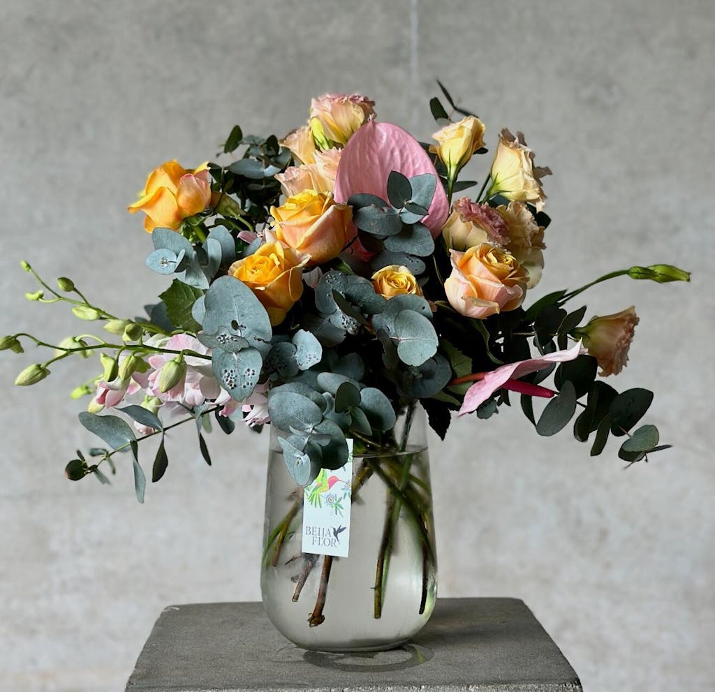 Bask in the sun-kissed glow of the MARBELLA vase, with luxe roses and chrysanthemums. This arrangement captures Marbella's chic beachside allure, perfect for those who appreciate the finer things in life.