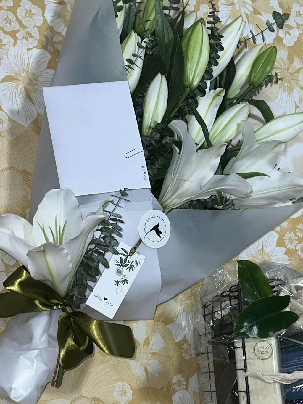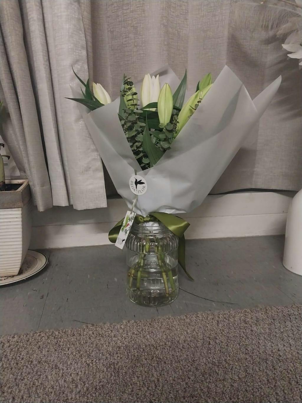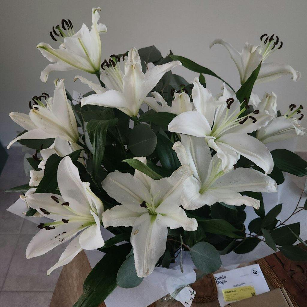 The TOKYO dazzles with grand oriental lilies. Chic and modern, its bold white blooms and lush greens infuse a luxurious scent, embodying sophistication and style. Lilies are usually delivered in bud for maximum longevity.