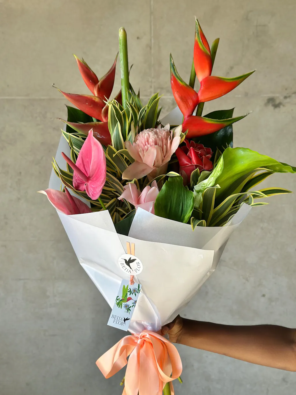 A vibrant mix of orchids, local heliconias and bold gingers, capturing the spirit of the famous Mindil Beach markets, loved by locals and tourists alike for the eclectic stalls and stunning tropical sunsets.